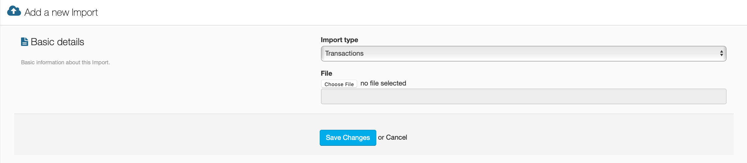 Importing your transaction types is the first of three imports you should be doing. You will need to do this one first to ensure that all of the appropriate transaction types are available before you move your users on, to prevent any issues. To import your transaction types, head over to the Imports screen, and click on 'Add a New Import'. This will bring you to the following screen.