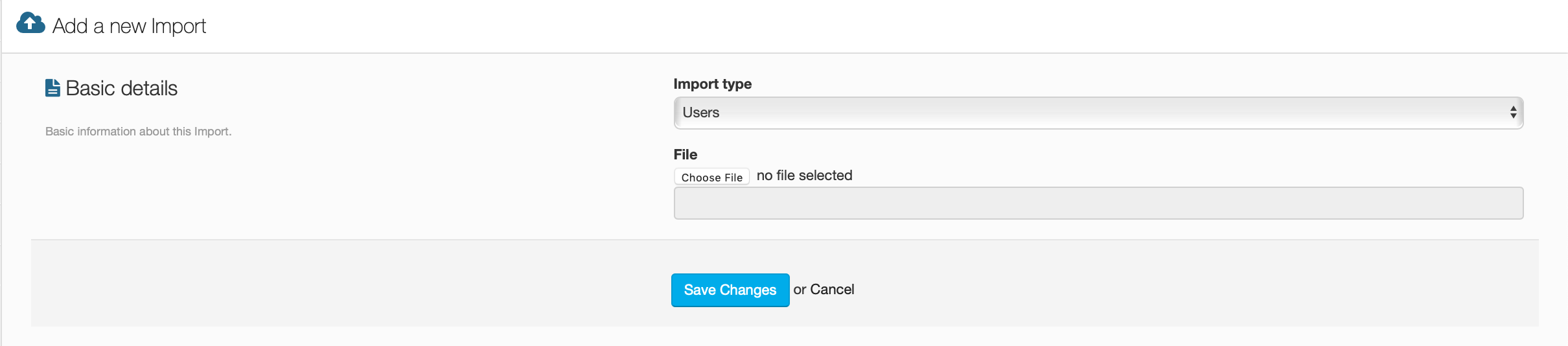 Importing your users is the second of three imports you should be doing. You will need to do this one after the transaction types but before pay advices, to ensure that your employees get setup with all the previous transaction types from your portal and also to prevent any issues. To import your users, head over to the Imports screen, and click on 'Add a New Import'. This will bring you to the following screen.