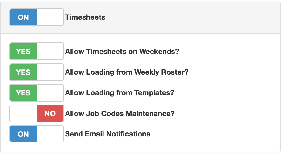 If you go down into the next box if timesheets are active on your portal, you will see the same button at the bottom of the box, this will allow you to toggle notifications for timesgheet