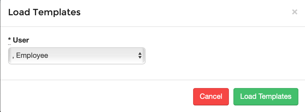 Once this is done, on your timesheets page will be another option in the top right corner for loading in timesheet templates. Select which template you want to use then click on the 'Load Templates' button.