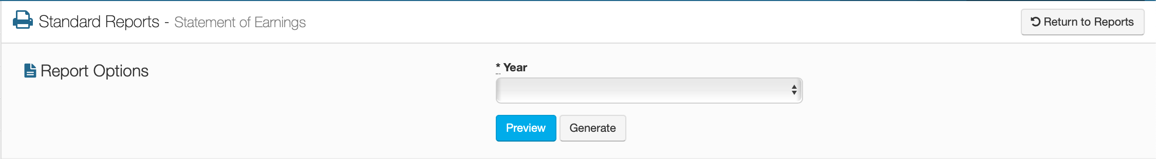 The Statement of Earnings is a report that shows information for the financial year of a single employee that gets sent to IRD. It's a fairly basic setup, input the year that you want the report to show then click generate. This will create the report (and give you the option to send it).