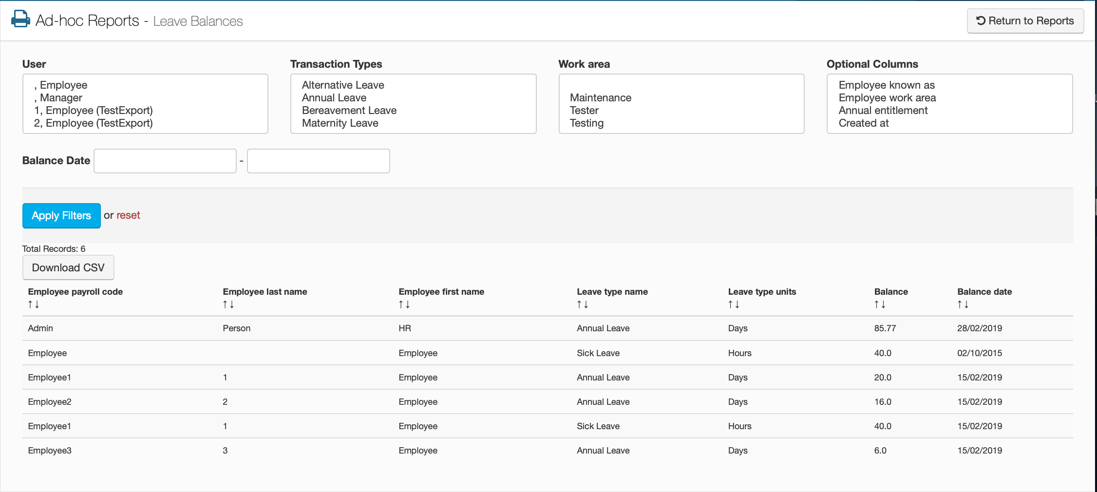 Ad-Hoc Reports - Leave Balances