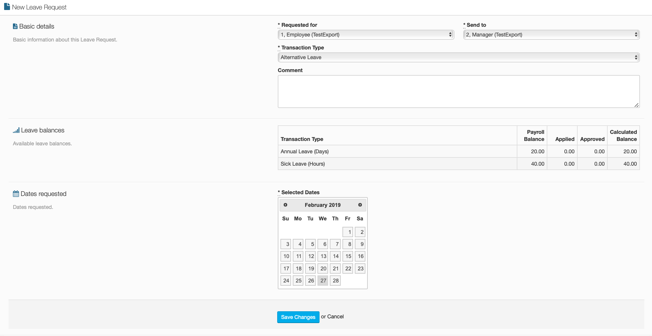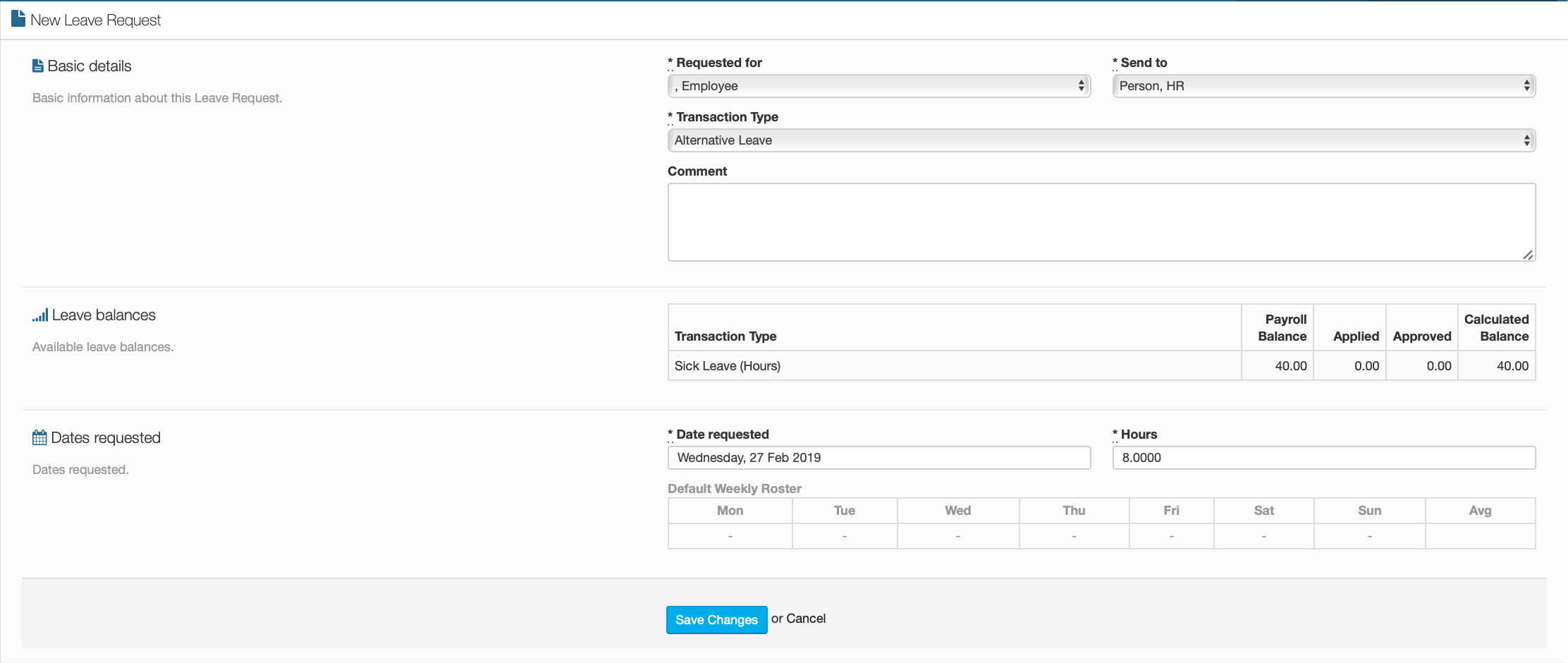 Once you are done, click on the 'Save Changes' button, this will take you back to the the leave requests page and it will also send your request to your manager for approval.